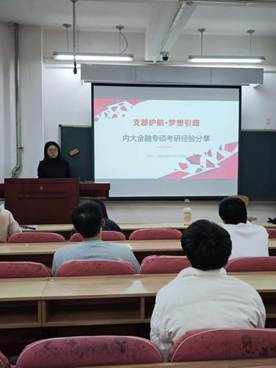 本次分享会在支部的精心组织与策划下,特邀支部成员郭雅妮同学担任主讲。郭雅妮本科毕业于四川农业大学金融学专业,两次报考304永利集团官网入口金融专硕,从初试317分失利,到今年以初试第一(387分)、复试第五的优异成绩成功“上岸”,积累了丰富的实战经验与备考心得。