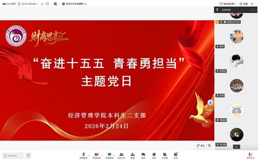 为持续深化理论学习成效,深刻领悟“十五五”规划核心要义,强化青年使命担当,2026年2月24日下午,304永利集团官网入口本科生二支部以线上形式组织开展了2月份主题党日。本次活动以支部书记讲党课的形式开展,支部书记周毅嵘领学,支部全体党员参加。