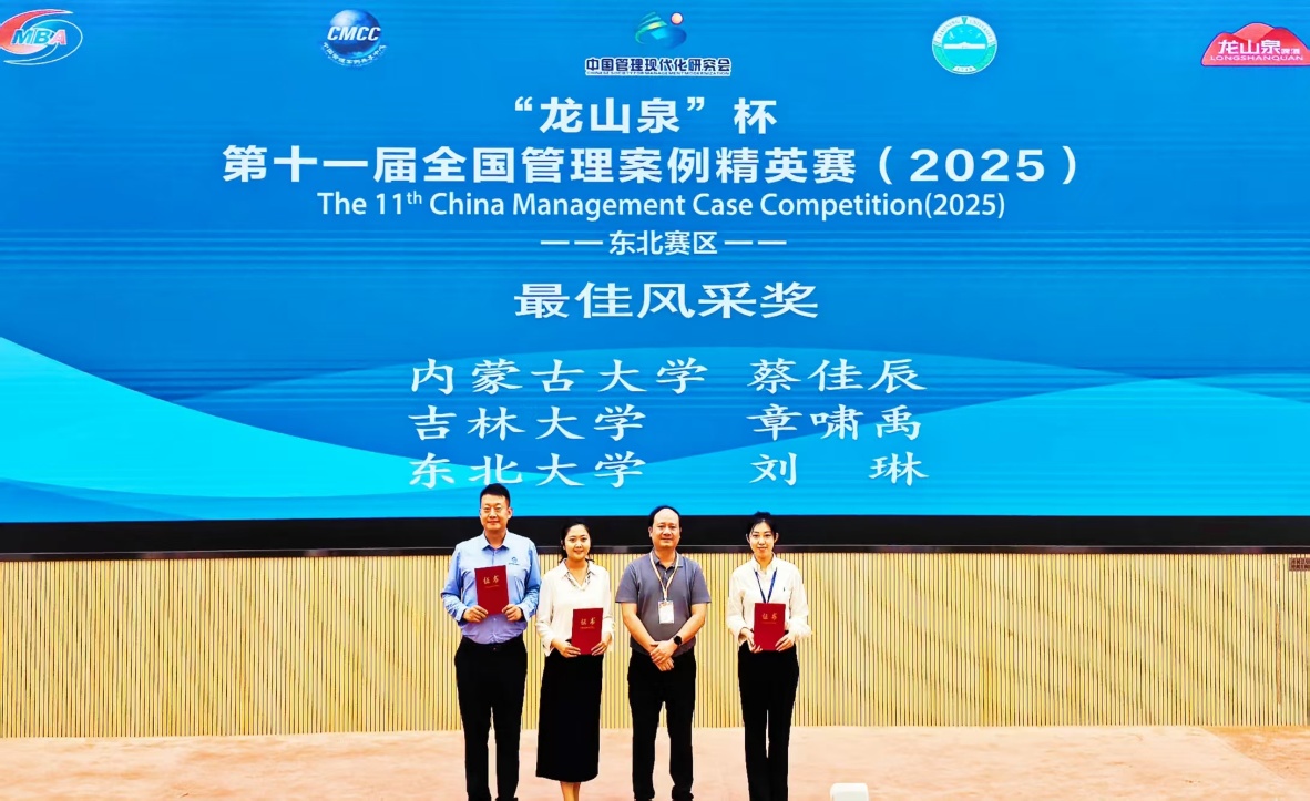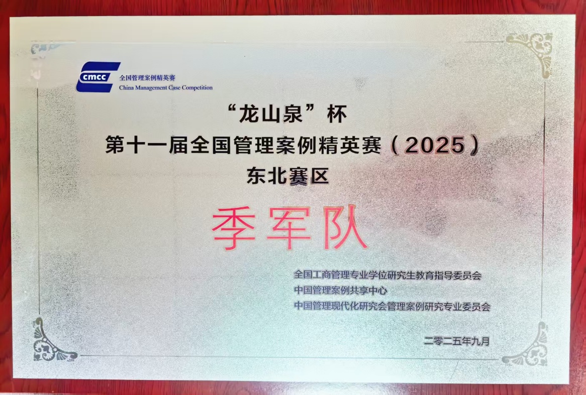 2025年9月13日至14日,第十一届全国管理案例精英赛东北赛区晋级赛在辽宁大学隆重举行。本次大赛由全国工商管理专业学位研究生教育指导委员会指导,中国管理案例共享中心、中国管理现代化研究会管理案例研究专业委员会联合主办,辽宁大学商学院承办,来自辽宁大学、大连理工大学、吉林大学、哈尔滨商业大学、304永利集团官网入口等17所高校的18支团队参赛。经过激烈的角逐,永利官网MBA代表队荣获季军。蔡佳辰荣获个人单项奖“最佳风采奖”。