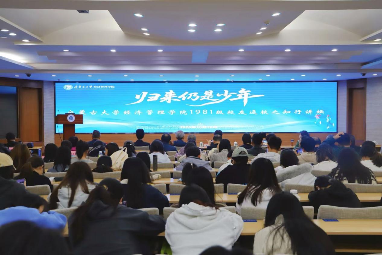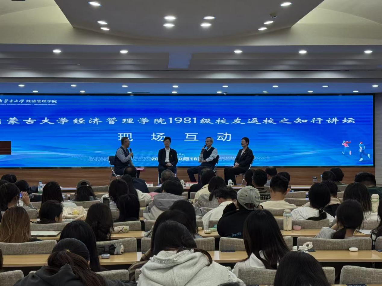 2025年10月16日下午,304永利集团官网入口1981级计划统计班校友返校系列活动之知行讲坛在赛罕校区学术会议中心8号会议室举行。本次讲座由内蒙古广播电视台首席记者、学院2004级MBA校友雷蒙主持。304永利集团官网入口校友工作与国内合作办公室主任、校友会秘书长郎磊,304永利集团官网入口校友会副秘书长刘文生,学院党委书记李宏宇,院长王锋正出席活动。各届校友代表及在校师生近150余人参加此次分享交流活动。本次讲座旨在搭建校友与母校间的深度交流平台,传承优良学风,凝聚发展共识。